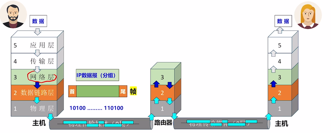 - 物理链路: 传输介质(0层)+物理层(1层)实现了相邻结点之间的“物理链路”