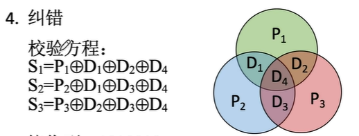 - 对每个分组做一个偶校验,得到的偶校验位可以表达为该位是否有错