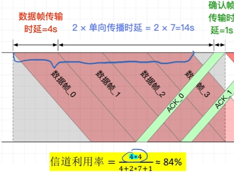 发送方的帧大于1,每次接收方发ACK信号时会等到发送方一次发送的所有帧都发完再回复,回复ACKn,n表示n号帧之前的所有帧都接收到