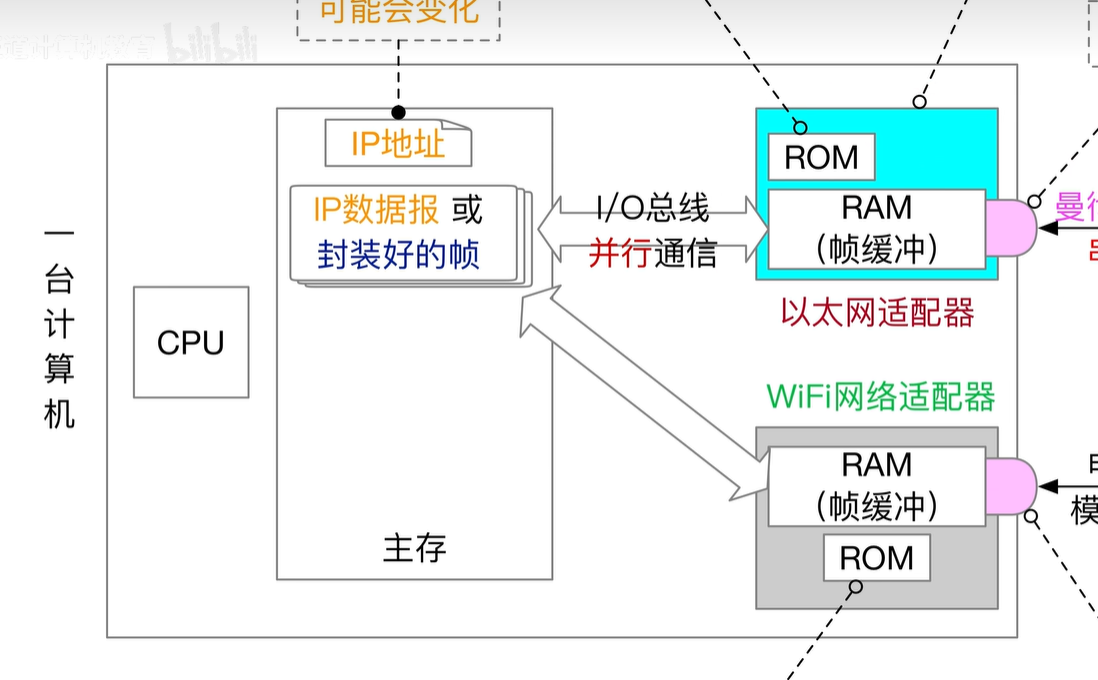 以太网适配器中ROM存放了唯一的MAC(Medium Access Control) 地址(WiFi网络适配器也有,MAC地址不同) 占48bit