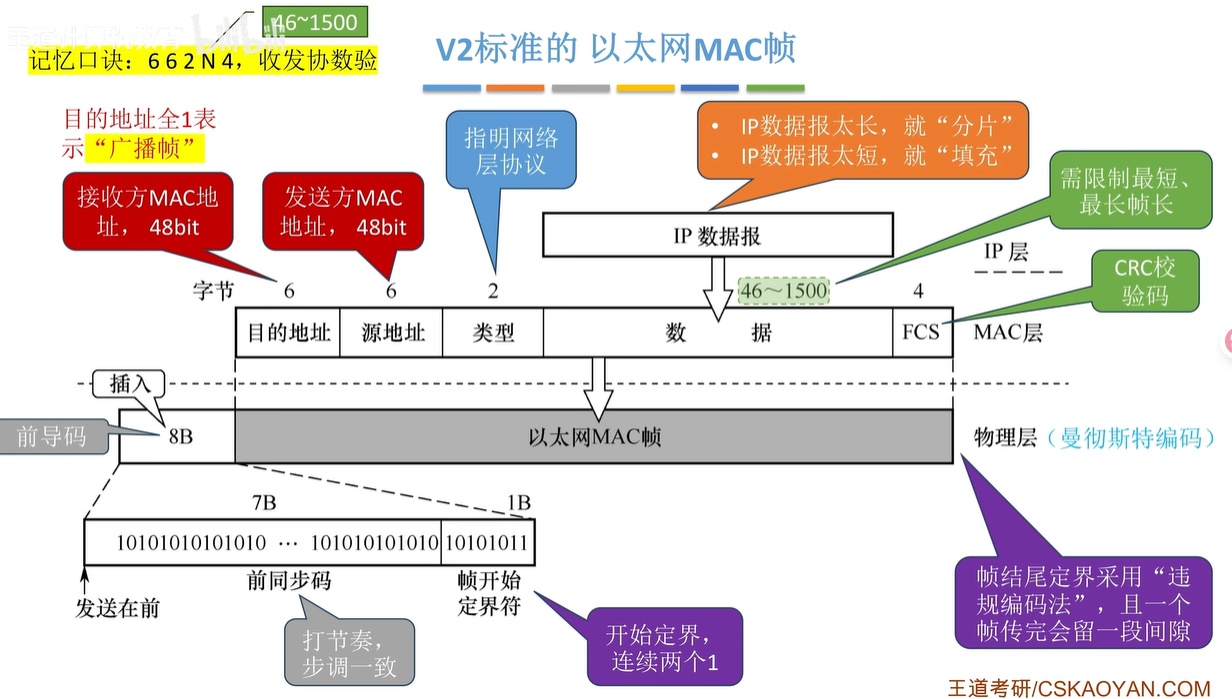 - FCS是CRC检验码 所以MAC帧长度是64B~1518B