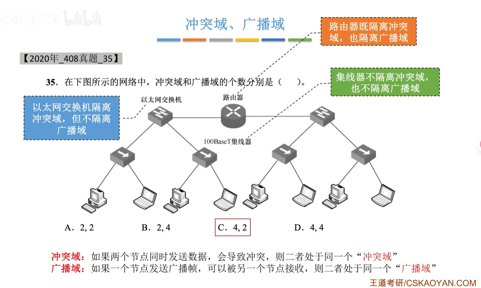 集线器不隔离冲突域和广播域(本身半双工),交换机不隔离广播域(本身全双工),路由器都隔离