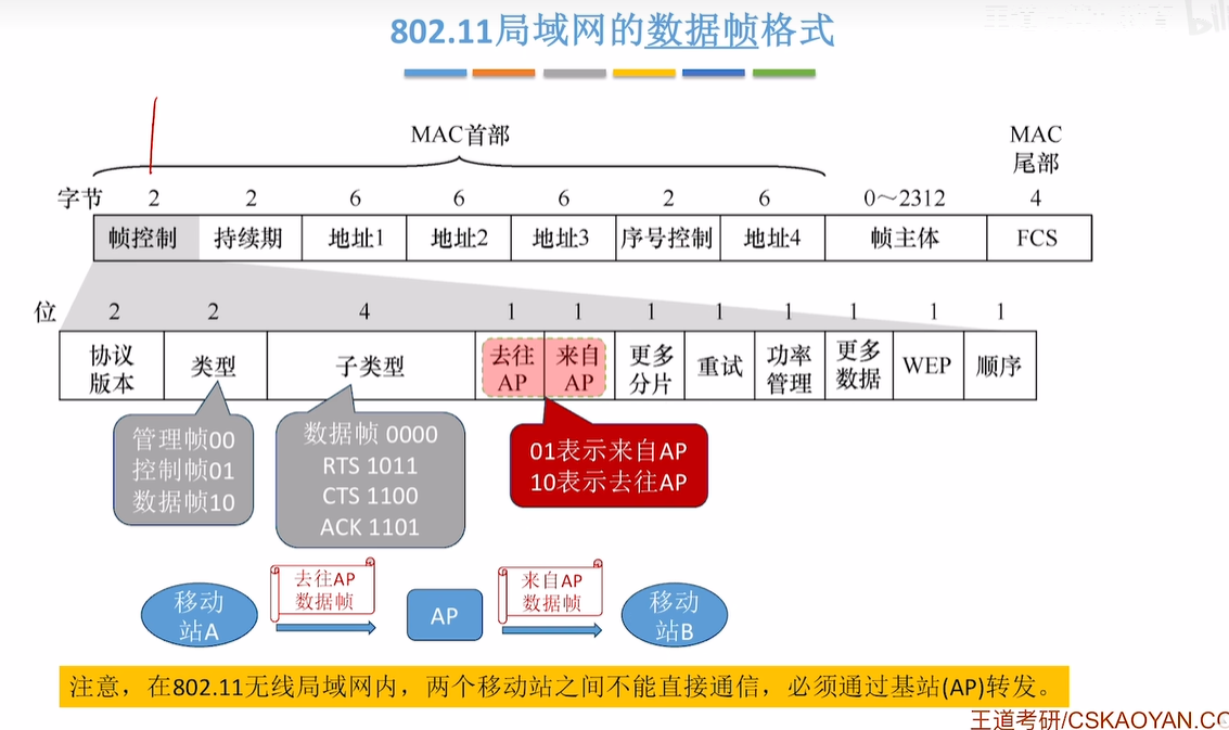AP与移动站之间无线链路传输 AP与AP,AP与路由,AP与以太网之间为有线链路