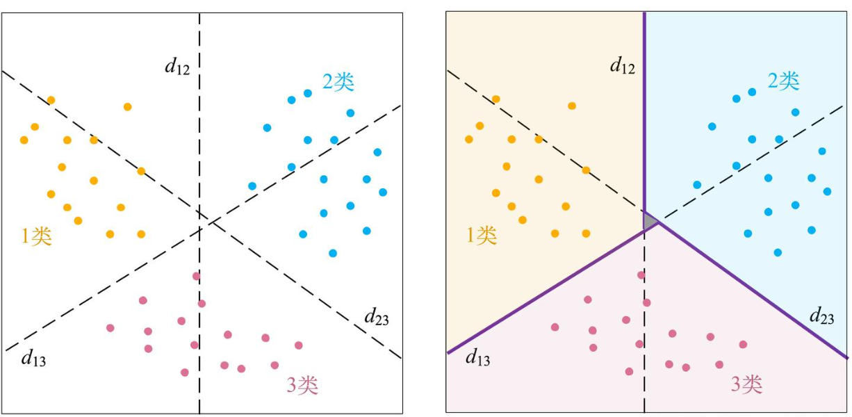 为避免平票问题,这里去掉了符号函数,如果属于该类,那么结果应该为正,对于新数据,选择预测结果最大的类作为预测