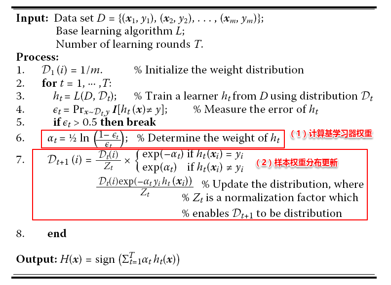 Boosting算法要求基学习器能对特定的分布数据进行学习,也就是可以更新样本权重来学习,更新方法有两种: