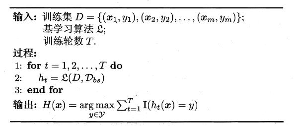 Bagging是有放回的采样,这样训练集中会有接近36.8%的样本没有被采样到,按相同的方式重复采样,可以得到T个数据集,训练得到T个学习器,对输出进行集成,得到