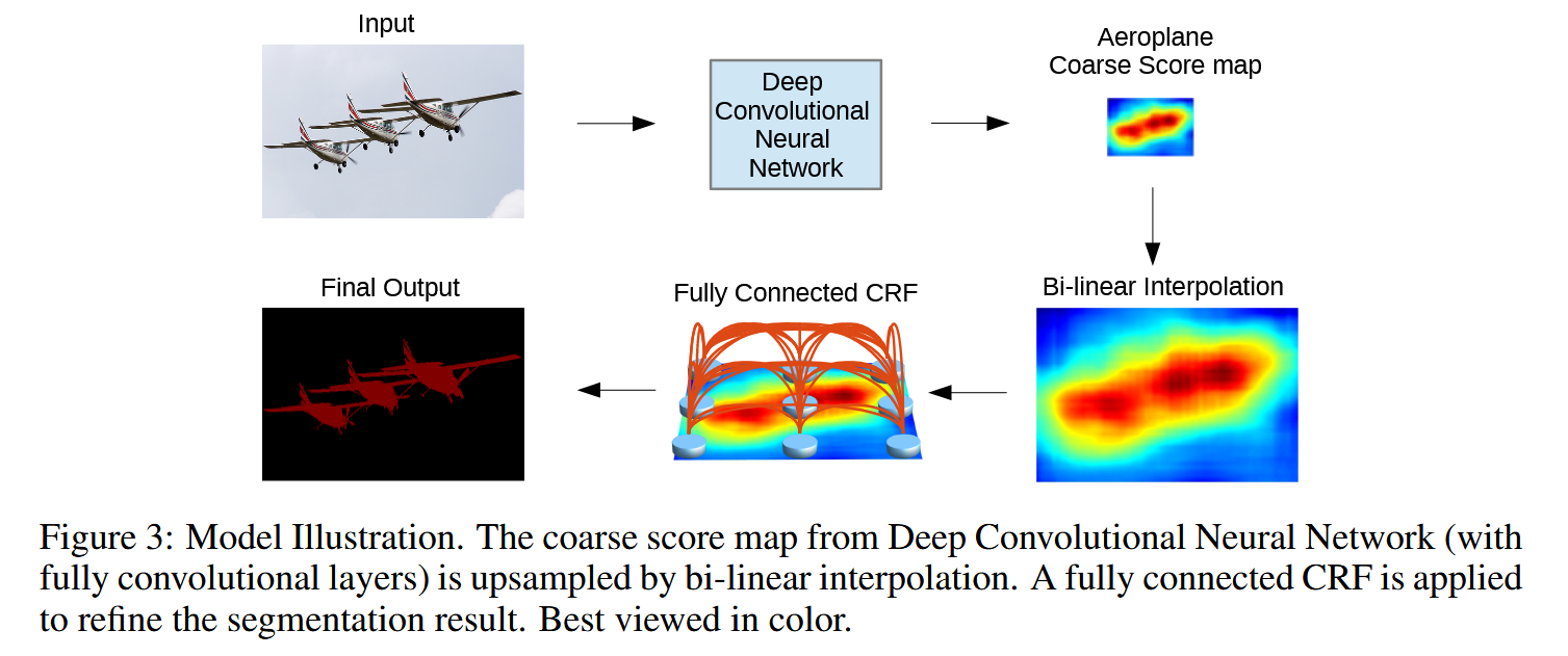 - 空间定位问题:空间定位上DCNN存在先天不足,不如引入一个新的概率图模型,一种额外的定位方法,再结合多尺度的特征,保留更多细节