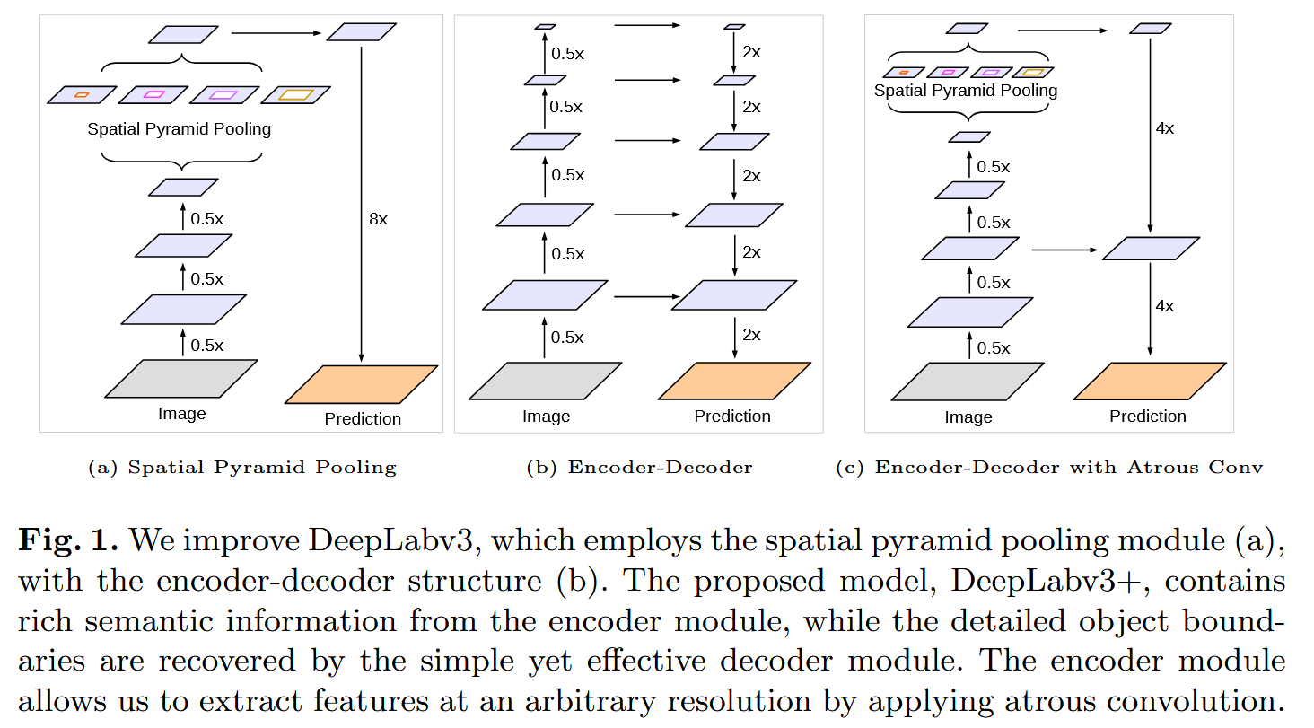 - Encoder-Decoder结构,新增一个解码器,结合DCNN的输出,保留细节信息